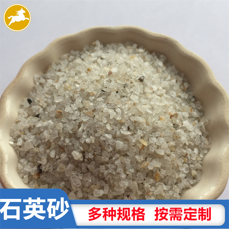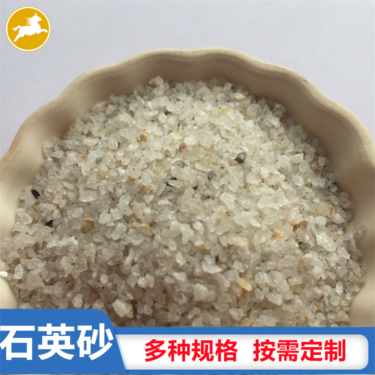 石英砂是石英石經破碎加工而成的石英顆粒。石英石是一種非金屬礦物質,是一種堅硬、耐磨、化學性能穩定的硅酸鹽礦物,其主要礦物成分是SiO2。石英砂的顏色為乳白色、或無色半透明狀,莫氏硬度7。