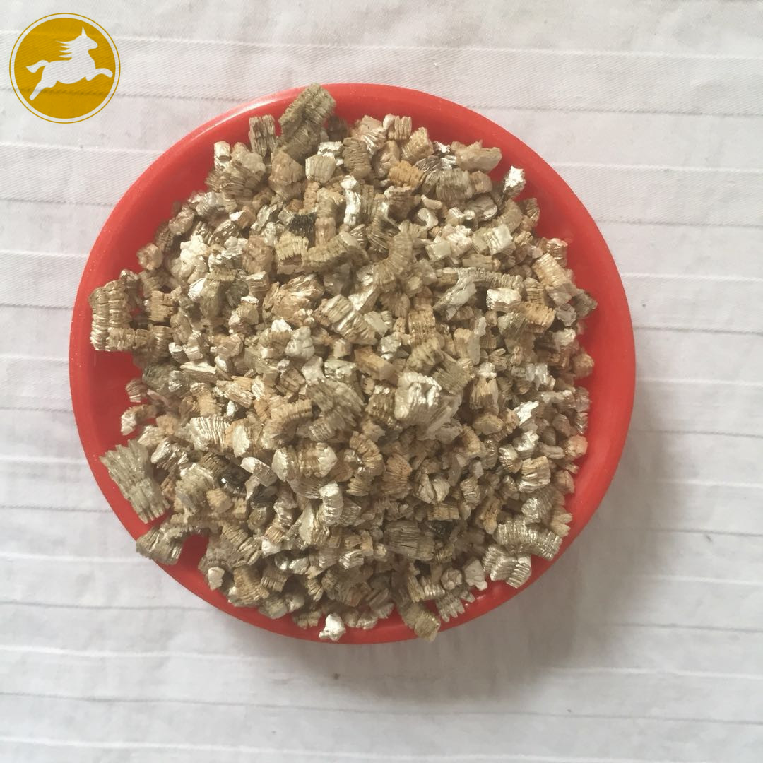 蛭石具有隔熱、耐凍、抗菌、防火、吸水、吸聲等優異性能,在800~1000℃下焙燒0.5~1.0分鐘,體積可迅速增大8~15倍,高達30倍。顏色變為金黃或銀白色,生成一種質地疏松的膨脹蛭石,但不耐酸,其介電特性也較差。